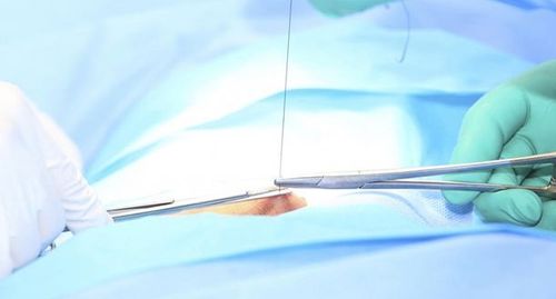 - Bước 3: Khâu lại vết rách ngoài tử cung (cùng đồ nếu có) và vết rách thành âm đạo bằng chỉ tiêu mũi rời.