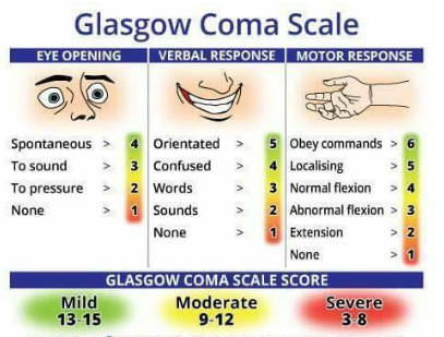 Kết quả chung của thang điểm Glasgow đánh giá hôn mê giúp phân loại mức độ trong hôn mê do chấn thương não, điểm càng thấp tiên lượng càng nặng: