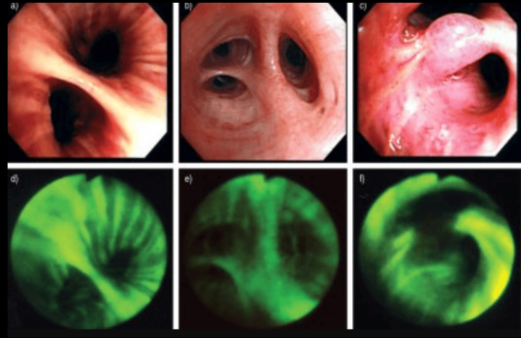 - Vùng phế quản tổn thương thường nhạy cảm với ánh sáng huỳnh quang và sẽ bắt màu nâu đỏ. Vì vậy, khi ứng dụng kĩ thuật này sẽ giúp dễ dàng phát hiện tổn thương từ 1,5 đến 2,5 lần. Nội soi phế quản huỳnh quang còn giúp phát hiện sớm ung thư phổi, đánh giá được những thay đổi ở các vùng phế quản mà mắt thường không nhìn thấy. (Xem thêm: 5 dấu hiệu sớm của ung thư phổi bạn cần biết)