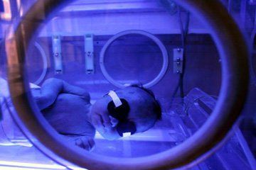 Đèn huỳnh quang màu xanh lam được đặt trên lồng ấp của trẻ được sử dụng để điều trị bệnh vàng da (vàng da và vàng mắt). Trẻ sơ sinh bị vàng da thường được điều trị bằng cách chiếu đèn này trong ba đến bảy ngày.