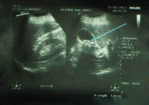 Một bệnh nhân nữ 54 tuổi không có tiền sử bị đau hoặc sỏi túi mật được phát hiện trước đó vào viện vì cơn đau bụng dữ dội ở khu vực trên rốn và dưới sườn bên phải. Quá trình khám lâm sàng cho thấy khả năng viêm tuỵ cấp, trong khi siêu âm bụng phát hiện sỏi nhỏ ở túi mật, kết quả xét nghiệm máu cho thấy nồng độ amylase vượt quá 3000 đơn vị.