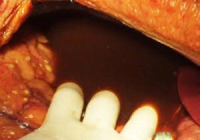 - Phẫu thuật mở ở một bệnh nhân viêm tuỵ hoại tử do biến chứng của sỏi túi mật nhỏ.