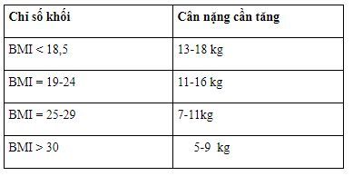 Không phải sự tăng cân nào trong khi mang thai cũng được xem là bình thường và cân đối. Trong thời gian mang thai, trung bình cân nặng của mẹ sẽ tăng theo bảng sau (mức tăng cân hợp lý khi mang thai):