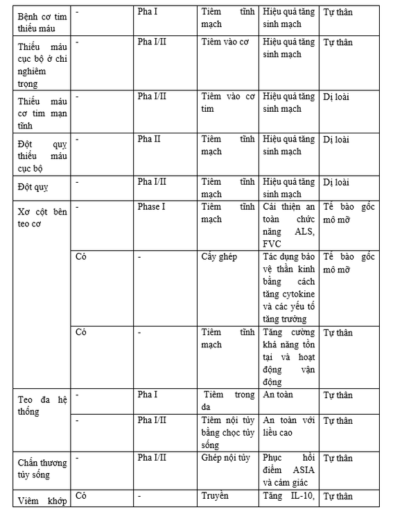 Một số nghiên cứu khác nổi bật liên quan tới ứng dụng liệu pháp tế bào gốc trung mô: