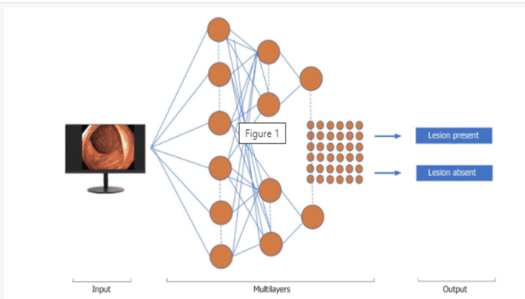 Thuật toán học máy (Machine learning – ML) được phân biệt thành các phương pháp có giám sát và không được giám sát. Một ví dụ của công nghệ học máy được giám sát, mạng nơ-ron nhân tạo (ANN), phản ánh chức năng sơ đồ của não. Mỗi nơron là một đơn vị tính toán và tất cả các nơron được kết nối để tạo ra một mạng. Các thuật toán học máy và mạng nơ-ron phức tạp (CNN) đã được tạo ra để huấn luyện phần mềm phân biệt vùng bình thường với vùng bất thường trong lòng ruột. Để phát hiện polyp, công nghệ học máy sử dụng một số đặc điểm cố định, chẳng hạn như kích thước, hình dạng và các kiểu niêm mạc của polyp.