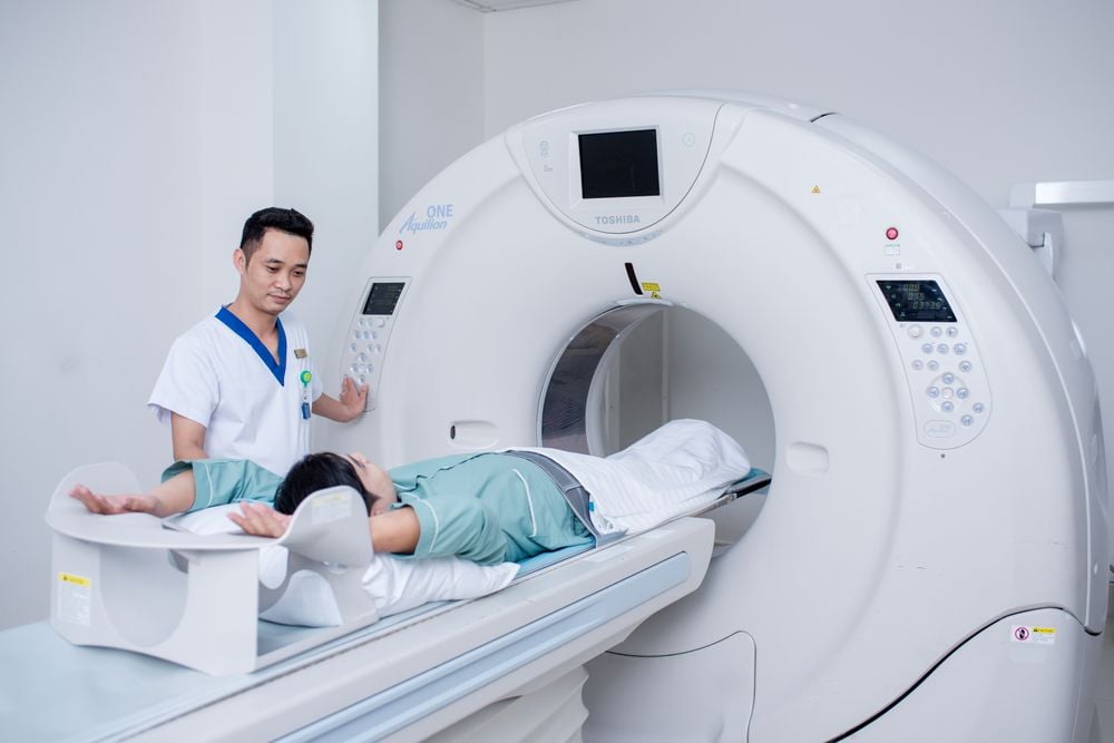 - Chụp cắt lớp vi tính (CT): Cung cấp hình ảnh chi tiết về kích thước, vị trí và mức độ xâm lấn của khối u, từ đó giúp đánh giá giai đoạn bệnh và lên kế hoạch điều trị.